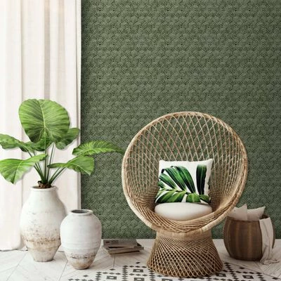 Cette feuille de papier peint intissé durable a un motif géométrique dans des tons verts. Elle peut être retirée à sec sans endommager votre mur.