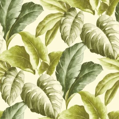 Ce panneau de papier peint durable présente un motif de feuilles tropicales et s’applique très facilement.