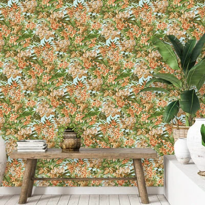 Cette feuille de papier peint intissé durable a un motif floral multicolore. Elle peut être retirée à sec sans endommager votre mur.