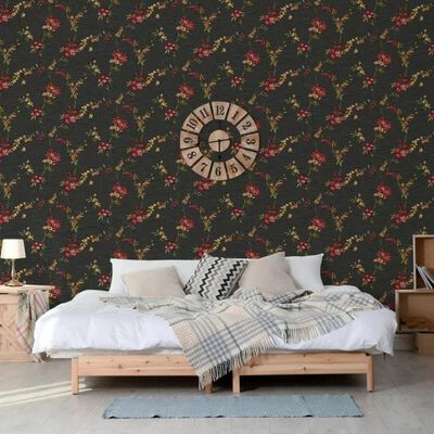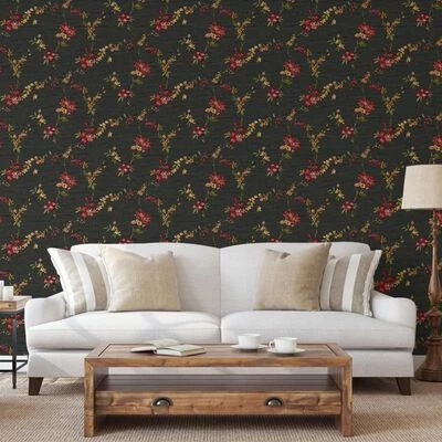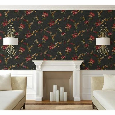 Ce papier peint durable présente un design anglais classique avec un motif de fleurs couleur noire. Il peut même être retiré à sec sans endommager votre mur.