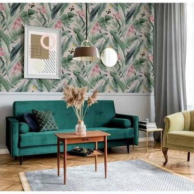 Ce papier peint Lush Tropical rose et bleu fait partie de la collection DUTCH WALLCOVERINGS, une marque spécialisée dans le papier peint de haute qualité qui vous inspirera avec différents motifs de papier peint adaptés à tous les styles d’intérieur.