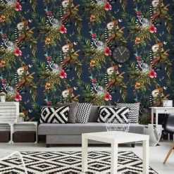Cette feuille de papier peint intissé durable a un magnifique design de pin en bleu et orange. Elle peut être retirée à sec sans endommager votre mur.