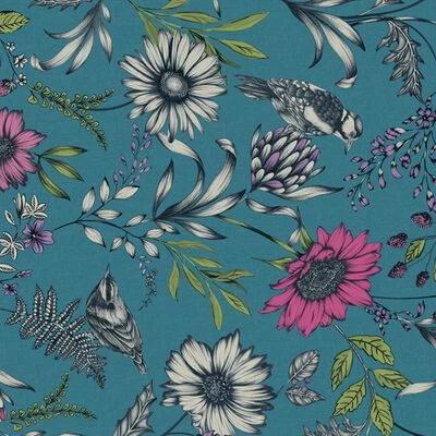 Cette feuille de papier peint a un motif d’oiseaux aux couleurs vives, et si désiré, elle peut être enlevée par un décapant ou un appareil à vapeur pour papier peint.