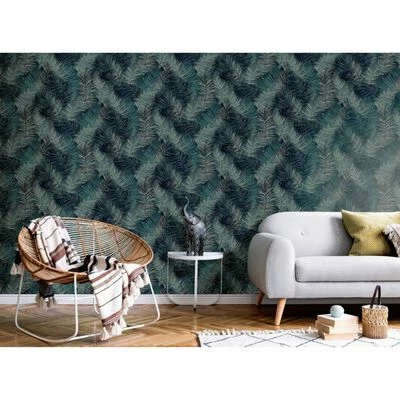 Cette feuille de papier peint a un motif de feuilles de palmier, elle est résistante à la déchirure et, si vous le souhaitez, elle peut être enlevée complètement à sec sans endommager votre mur.