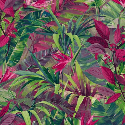 Cette feuille de papier peint intissé durable a un motif de fleurs luxueuses en rose et vert. Elle peut être retirée à sec sans endommager votre mur.
