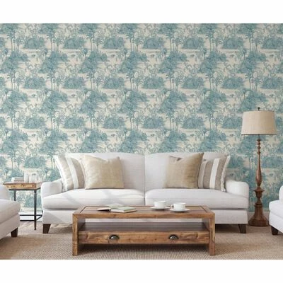 Ce papier peint durable présente un design élégant avec un motif d’arbres tropicaux dans des couleurs beige et bleu clair. Il ressemble presque à un tableau. Il peut même être retiré à sec sans endommager votre mur.