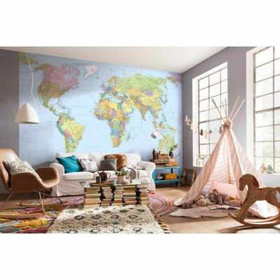 Ce papier peint grand, magnifique et très coloré World Map XXL de la marque Komar représente une carte précise du monde et présente un moyen simple d’animer votre pièce et de faire une véritable déclaration de design.