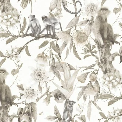 Faites entrer la nature dans votre maison avec ce papier peint exotique imprimé de singes en couleur beige.
