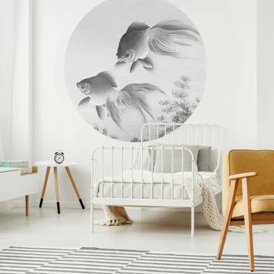 Ce papier peint unique et élégant en forme de cercle de 142,5 cm Two Goldfish avec un bel imprimé suit les dernières tendances en matière de décoration murale et fait partie de la collection Wallpaper Circle de la marque WallArt.