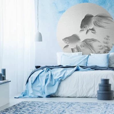 Ce papier peint unique et élégant en forme de cercle de 190 cm Two Goldfish avec un bel imprimé suit les dernières tendances en matière de décoration murale et fait partie de la collection Wallpaper Circle de la marque WallArt.