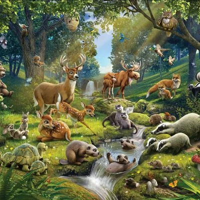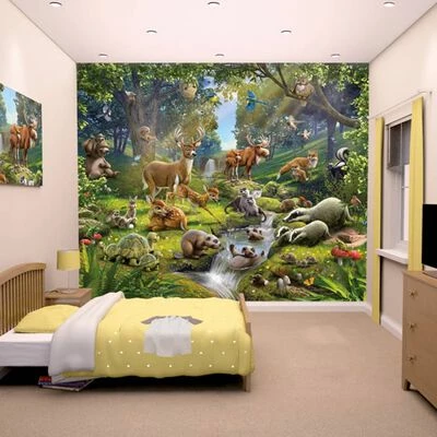 L’incroyable image de Woodland est une murale saisissante et magnifique conçue pour transformer les chambres et les salles de jeux, ou tout autre mur nécessitant une transformation ! Ce papier peint de la Forêt des Animaux se compose de 12 feuilles qui couvrent une superficie impressionnante de 304 x 243 cm. Il présente des cerfs, des blaireaux, des ours, des hiboux, des canards et des pics. Les enfants de tous les âges seront séduits par cette immense fresque murale, qui sert de rénovation passionnante de chambre.